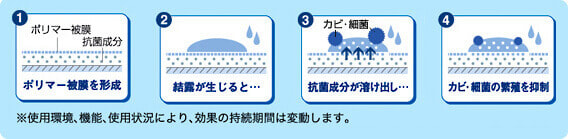 専用の薬剤で洗浄。抗菌・防カビ処理を施します。