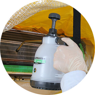 熱交換器のカビやホコリを専用の資器材と薬剤で高圧洗浄。