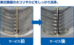 ※「エアコン内部点検・報告」とは、カビ・ホコリ等が熱交換器やファンに付着している状態を点検し、報告させていただきます。