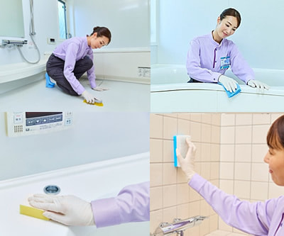 壁や天井のカビ、浴槽・蛇口などの湯アカ汚れをプロの道具ですみずみまで洗浄。すっきり清潔な仕上がりです。